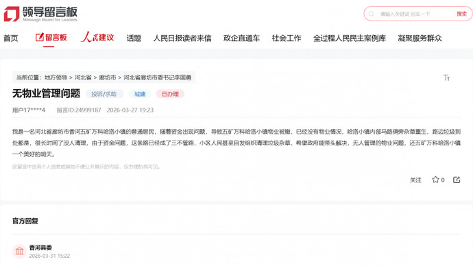 万科物业撤出河北香河哈洛小镇两小区, 业主担忧后续服务无保障