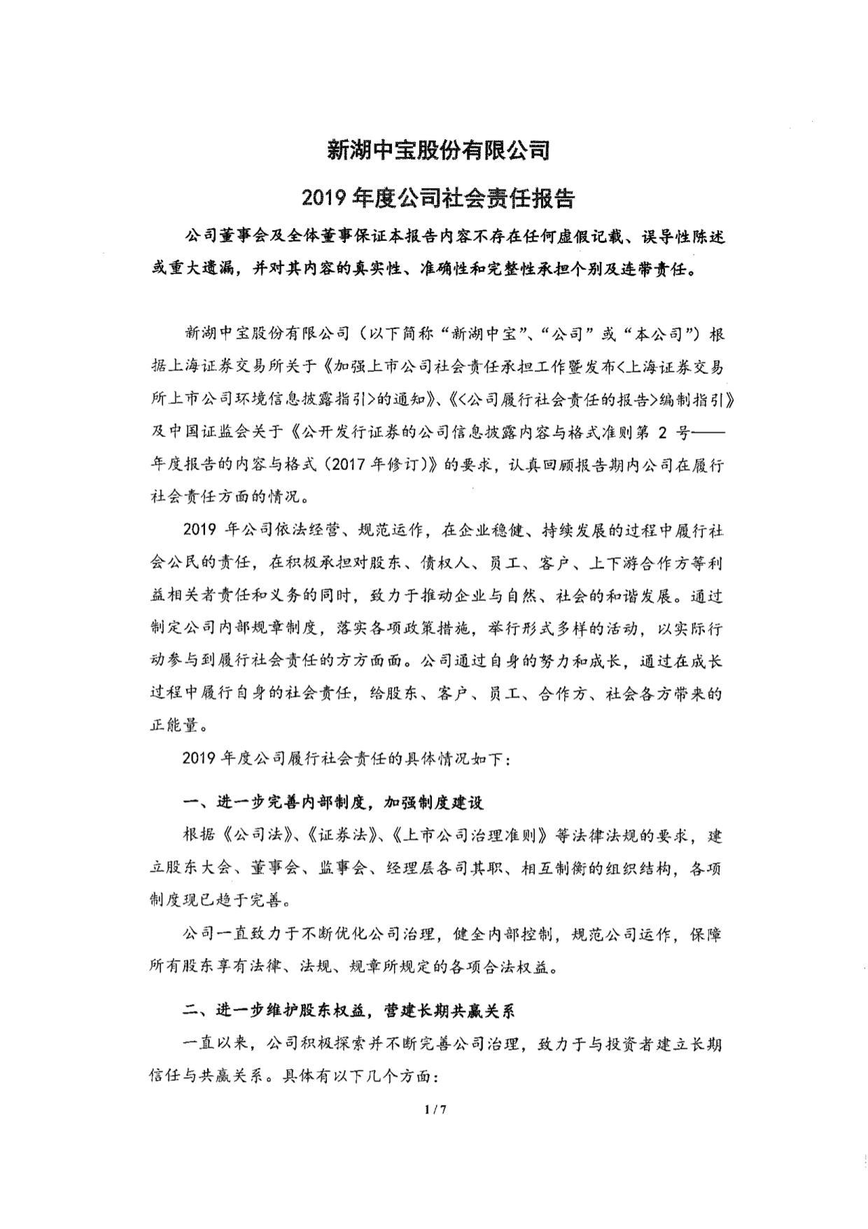 新湖中宝2019年度社会责任报告