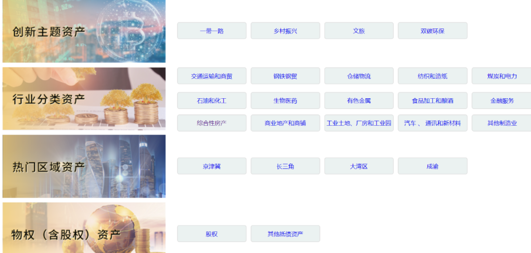 凤凰网风财讯发现,针对这一轮2000亿资产的集中推介,长城资产将其按照不同区域、行业、主题进行展示。