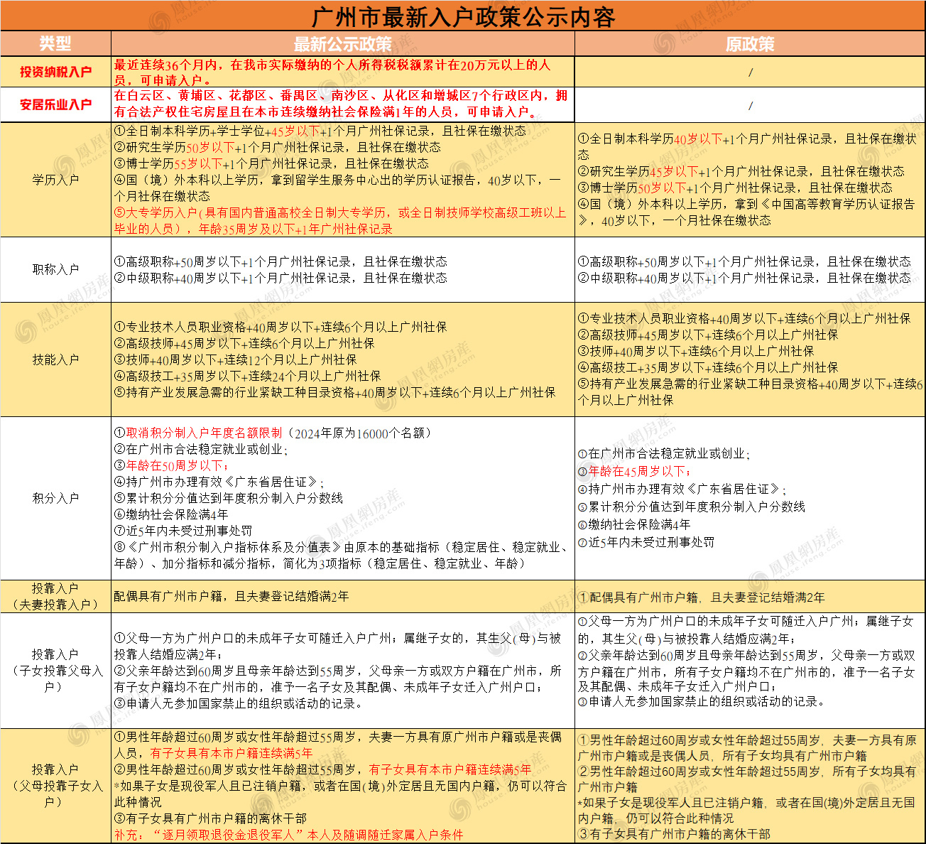 在父母投靠子女入户层面,从所有子女均具有广州市户籍调整为有子女具有本市户籍连续满5年。