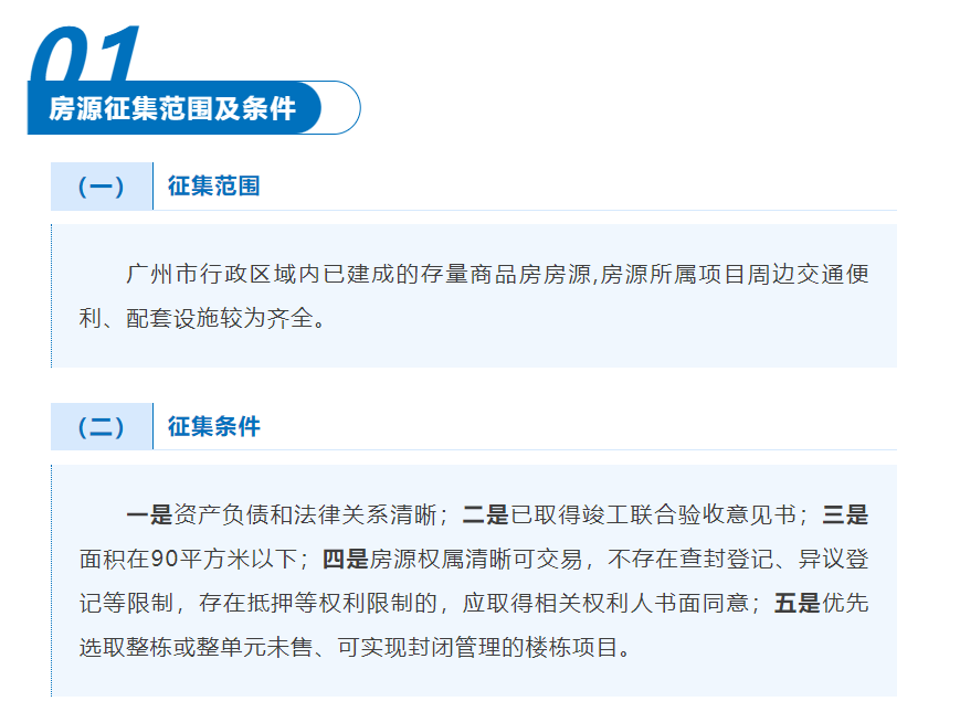 据公告内容显示,此次房源征集范围为广州市行政区域内已建成的存量商品房房源,房源所属项目周边交通便利、配套设施较为齐全。征集条件包括: