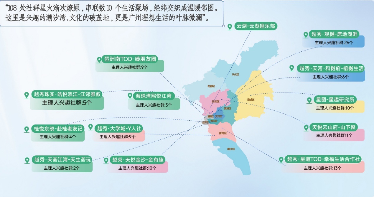 越秀地产广州区域在集团品牌规范下,深入挖掘项目人文与生态特性,与业主紧密互动,自下而上培育出了各具特色的社群组织,据统计,目前已成功聚集近百位内外部主理人,在17个项目创建108个社群,月均活动达100+场,为业主在家楼下打造了丰富多彩的生活方式。