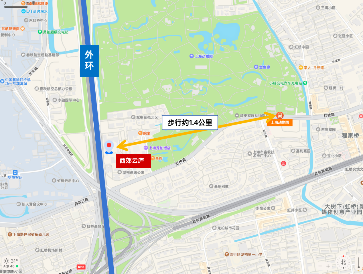 交通方面,项目步行到10号线上海动物园站需要1.4公里,对依赖地铁通勤的人来说,不算优势,不过出门就是外环入口,南侧是延安路高架,开车比较方便。