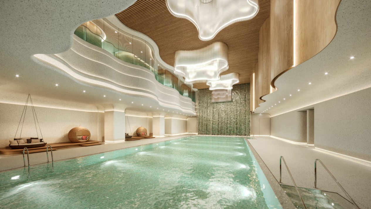 古北99的缦合荟会所更显夸张,近1.2万方的规模,户均面积达26㎡。大型宴会厅、精奢私宴餐厅、红酒雪茄吧、恒温泳池这些硬件只是基础,更关键的是它配套了26项MAHA定制服务——从教育医疗到商旅会展,业主想到的、没想到的,都能对接全球资源,与其说是会所,不如说是个“高端生活管家站”。