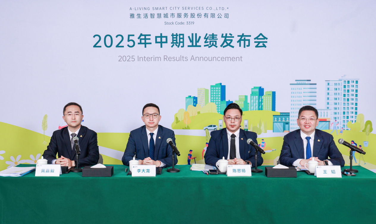8月27日,雅生活智慧城市服务股份有限公司(以下简称“雅生活”,股票代码:3319.HK)召开2025年中期业绩发布会。雅生活集团执行董事、总裁李大龙,执行董事、副总裁陈思杨,副总裁兼运营成本中心总经理王韬,首席财务官兼财务中心总经理黄嘉毅出席发布会。