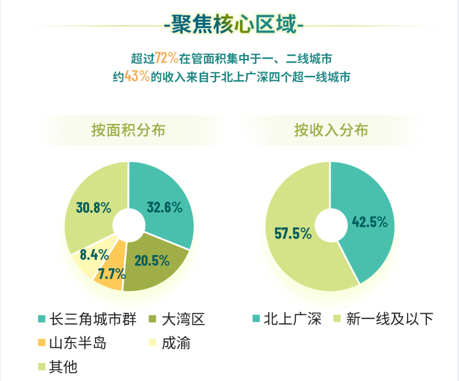 雅生活在管面积中超72%集中于一、二线城市