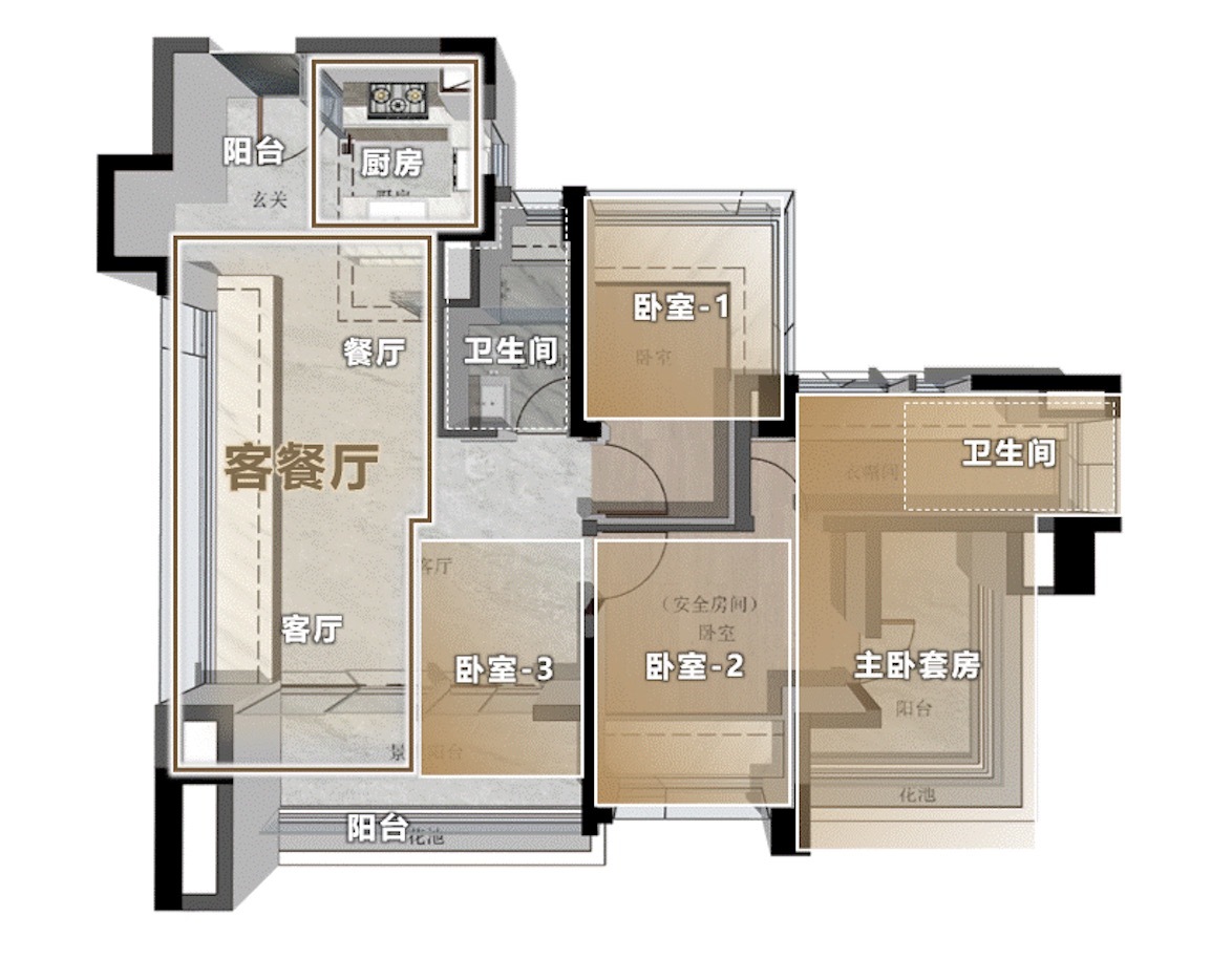 产品的打磨已入微境:云萃建面约88㎡做出一步到位四房,约5.2米南向超级厅堂,将空间利用率拉升数个等级;天悦云湖三期新规产品实现超100%使用率,户户朝南,部分楼层可瞰湖观园;LDKB一体化布局、多开间朝南、U型明厨、南北双阳台、强大收纳系统等,已成为越秀地产的产品“标配”,不断赋能和引领着城市精英的新生活体验。