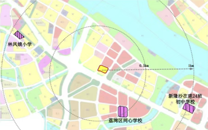 教育配套资源层面,周边有林凤娥小学、荔湾区同心学校、新隆沙在建24班初中学校、广东实验中学(高中全区统筹)等。