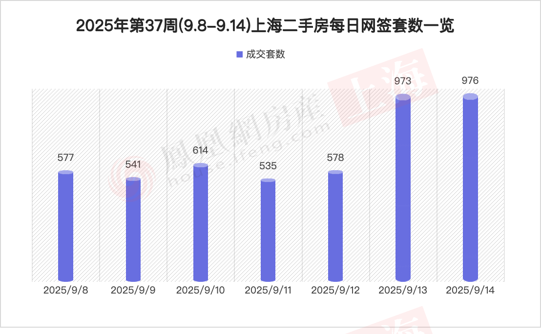 从单日成交走势来看,上周成交量峰值出现在9月14日(周日),当日成交976套;而谷值则出现在9月11日(周四),当日仅成交535套,市场波动较为明显。