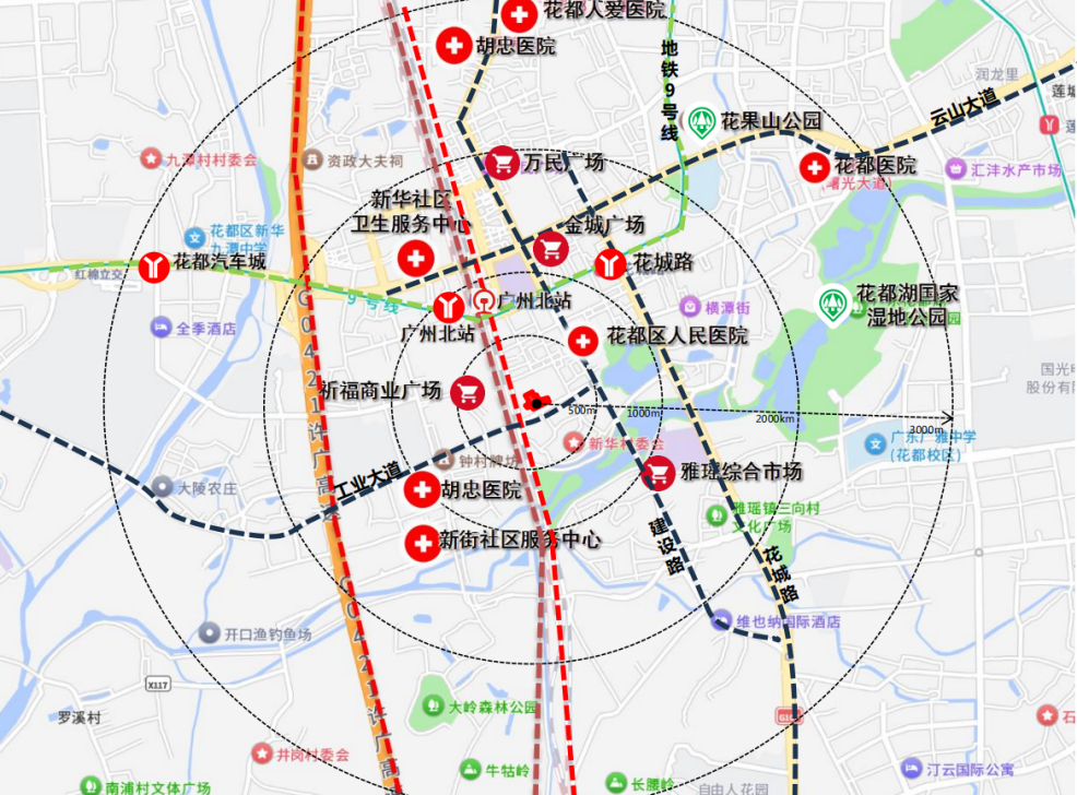 该地块位于地块位于花都区新华路以南、新民路以东,近地铁9号线广州北站、花城路站,周边在建地铁24号线雅瑶站,同时地铁36号线也正在规划中,这将进一步提升片区交通便利度。