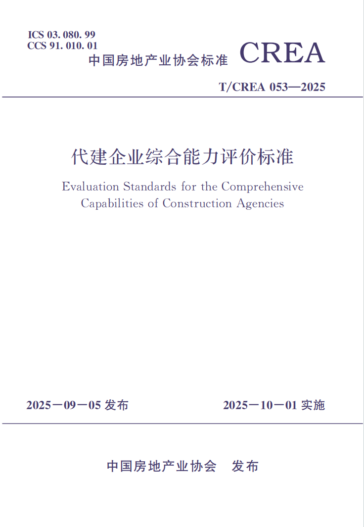 2025年9月13日,在第16届房地产科学发展论坛代建工作座谈会现场,由中国房地产业协会代建分会牵头、绿城管理担任主编并联合多家代建企业、中国建筑标准设计研究院等单位共同编制的《代建企业综合能力评价标准》(以下简称《代建标准》)正式发布。