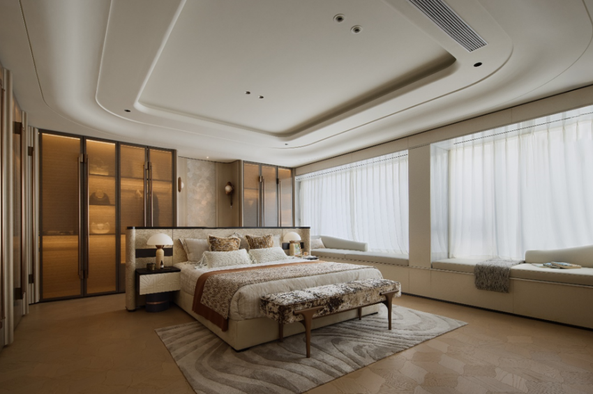 而在产品尺度的自由度与空间的精工细琢上,广粤观邸也展现了作为凯旋新世界的收官之作的高水准。主力在售为多种面积区间大平层单位,强调空间的开阔感与功能性。尺度阔绰的客厅、餐厅,配备独立衣帽间和卫浴的主人套房,以及对家居动线的精细考量,无不体现着对塔尖人群生活方式的理解与尊重。建筑的用料、社区的园林维护以及物业服务,均延续了凯旋新世界一贯的高标准,确保了居住的品质感和舒适度。
