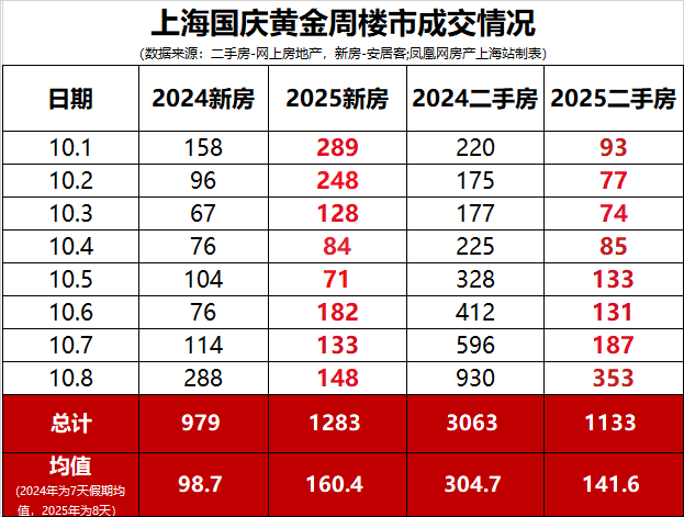 首先,政策的对比效应放大了数据的落差。回想2024年国庆前,上海迎来“9・29楼市新政”——外环购房年限“3改1”,首付比例直接降至15%,这种王炸级别的力度,直接带火了去年10月的楼市成交。