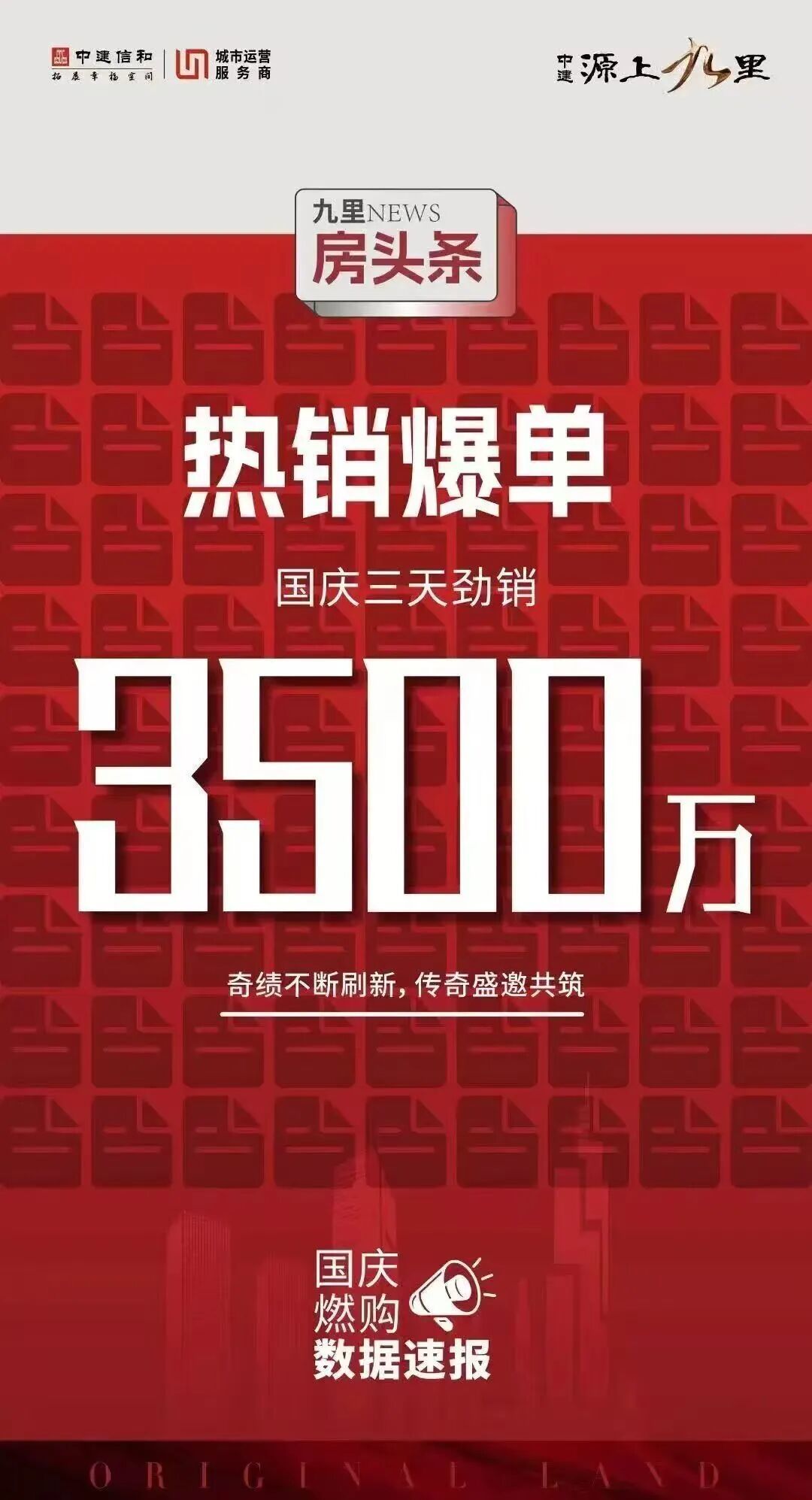 中建源上九里国庆三天,劲销3500万。