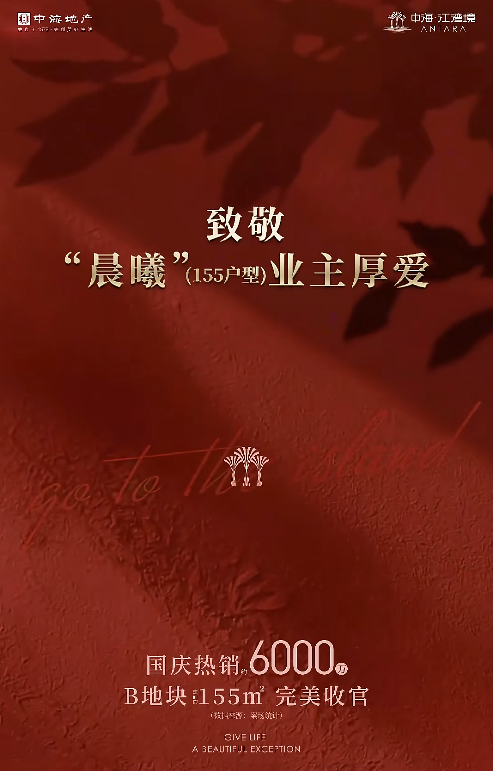 中海江湾境国庆热销6000万,B地块建面约155㎡完美收官。