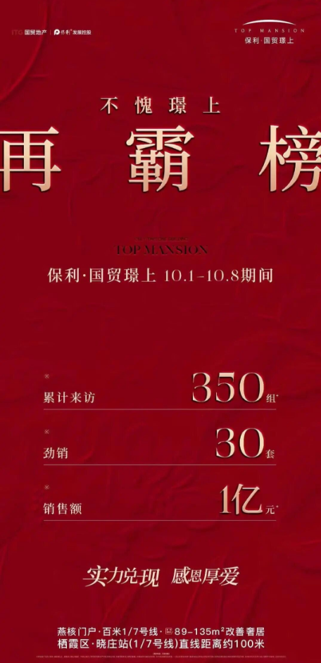保利国贸璟上假期累计来访350组,劲销30套,销售额1亿。