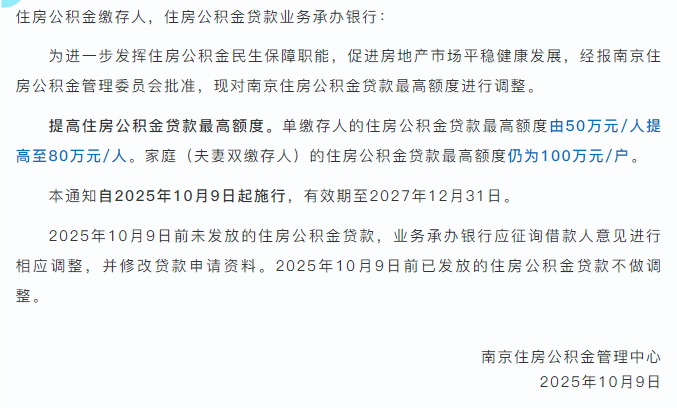 刚刚,南京突发公积金新政!