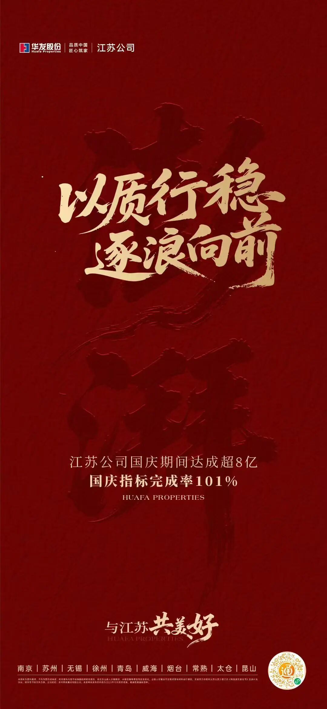 华发江苏公司国庆期间达成超8亿,国庆指标完成率101%。