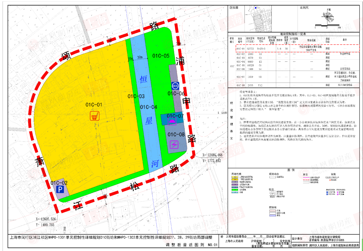 10月9日,上海市闵行区浦江社区MHP0-1301单元控制性详细规划01C街坊和MHP0-1302单元控制性详细规划27、28、29街坊局部调整公众参与草案公示,涉及总用地面积约38.22公顷。