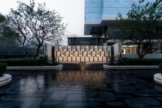 以1096块窑变釉陶板拼出的潮水立面,回应长江的呼唤,也将业主归家的尊贵感拉满;以贝金米黄石材的定制造型搭配暖黄的灯光,给业主归家的暖意;以社区图书馆、食行住健服务体系,关怀与书写出业主的每一丝息息相关。