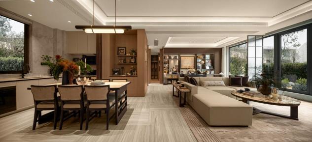 随着示范区同步开放的建面约139㎡样板间,以“轻复古折衷”风格带来耳目一新的视觉体验。其在色彩与材质上的巧妙运用,在功能上的细致规划,在场景上的贴心呈现,受到了客户的一致认可。