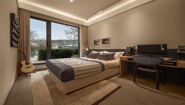 功能均衡:实现多元场景融合 主卧“小家化”:在合理控制面宽的同时,通过合理进深实现起居、睡眠与收纳的复合功能。南向连接3m×3.8m(墙中线到墙中线)观景露台,将室内空间自然延伸,升级为花园式套房体验。