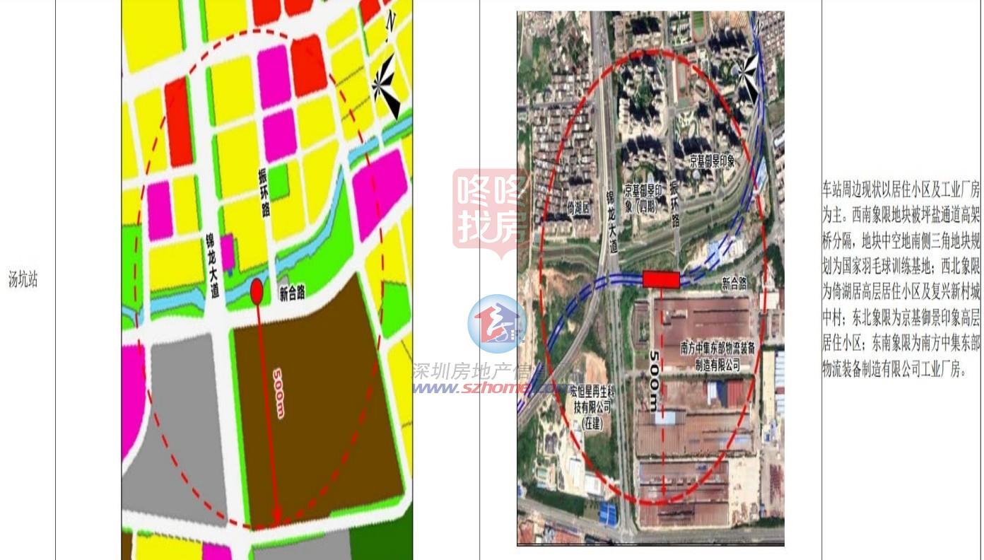 汤坑站是深圳轨道交通19号线一期工程第3座车站,车站位于新合路与锦龙大道交叉口东侧,沿新合路东西向敷设。车站共设3个出入口,1个安全疏散出口,2座地面无障碍电梯,2组风亭(矮)及1座冷却塔。