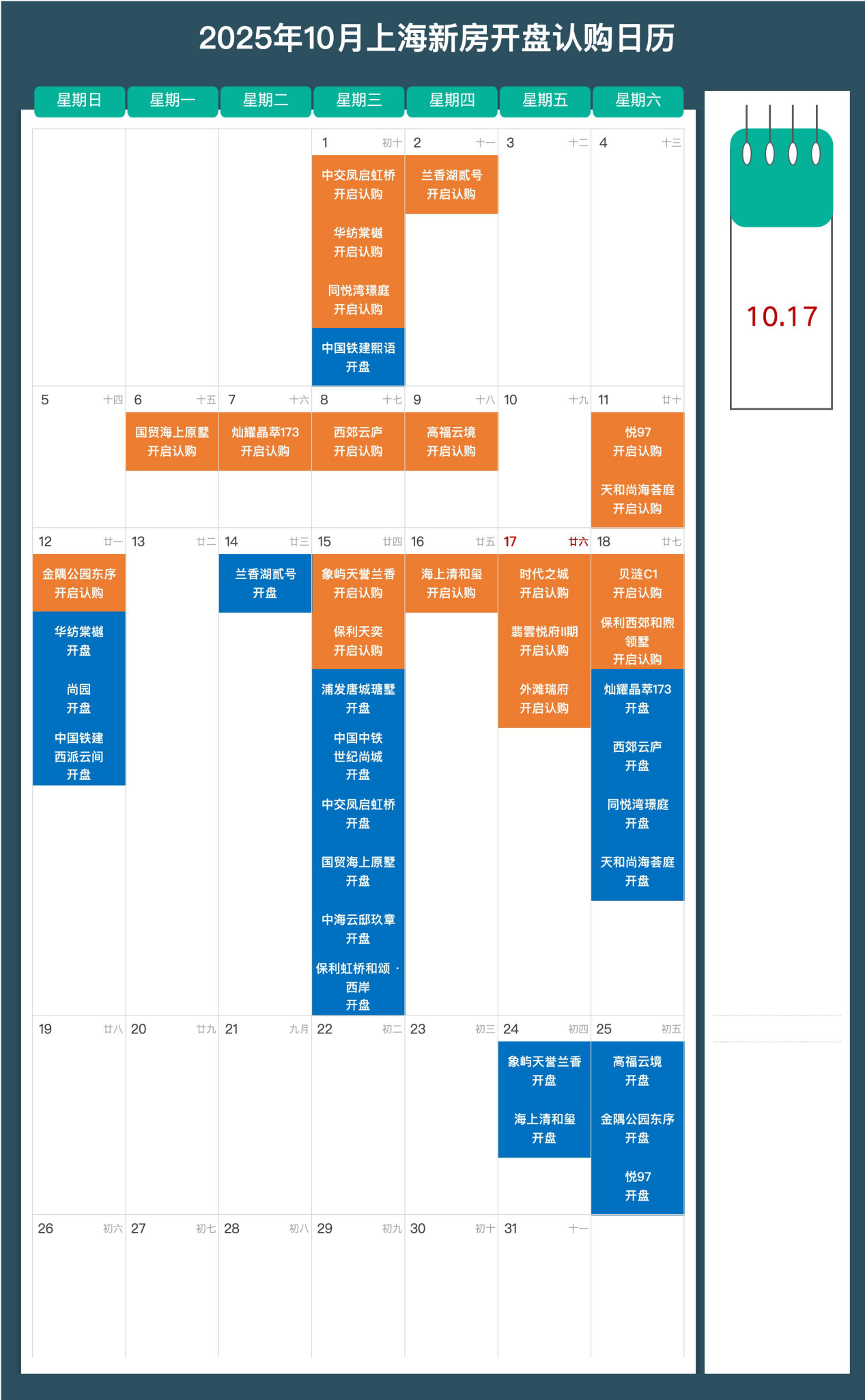 10月17日,上海共有3个新项目启动认购,分别为位于虹口四川北路板块的外滩瑞府、浦东新杨思板块的翡雲悦府II期,以及嘉定南翔板块的时代之城。