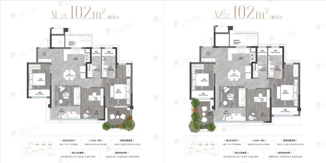 建面约102㎡三房两厅两卫,是当前江核待售纯新盘中的最小面积段,总价门槛相对较低。