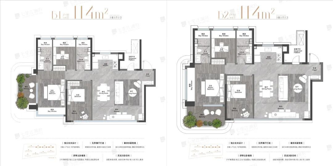 一户一露台,露台面积为全赠送,于此,可莳花弄草、饲鸟观星,亦可花园茶聚、星空派对、四时观景.……一方露台,赋能多元生活场景。