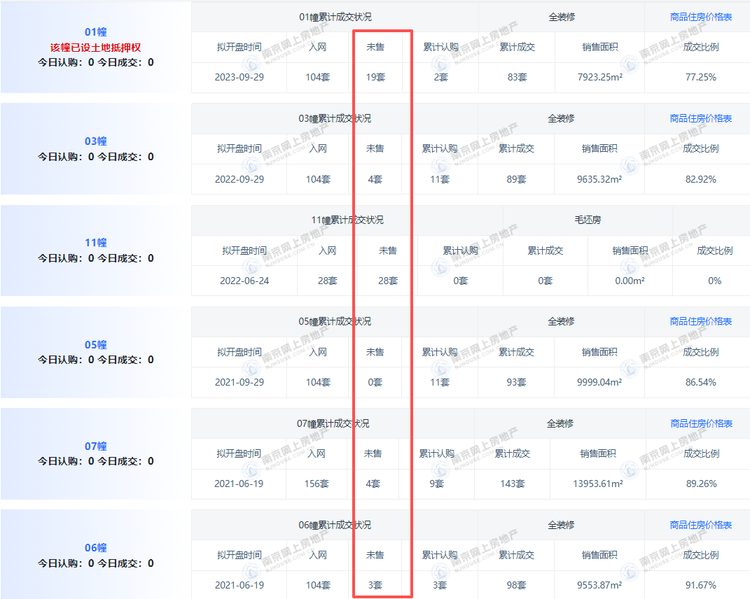据南京网上房地产数据显示,一期拾光艺境园6栋楼基本售罄,还剩余58套未售。