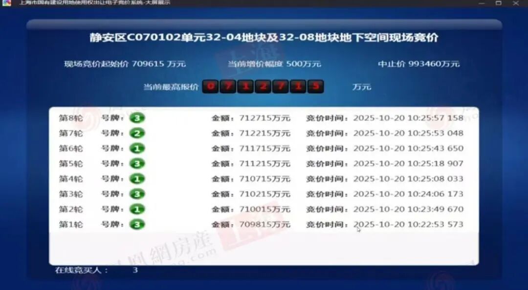 在刚刚揭幕的上海2025年第八批次土地拍卖中,静安区C070102单元32-04地块及32-08地块地下空间成为市场焦点。该地块凭借其稀缺的区位价值,共吸引中海、保利发展,以及招商&越秀&星狮&南通瑞城联合体三家竞买人参与角逐。
