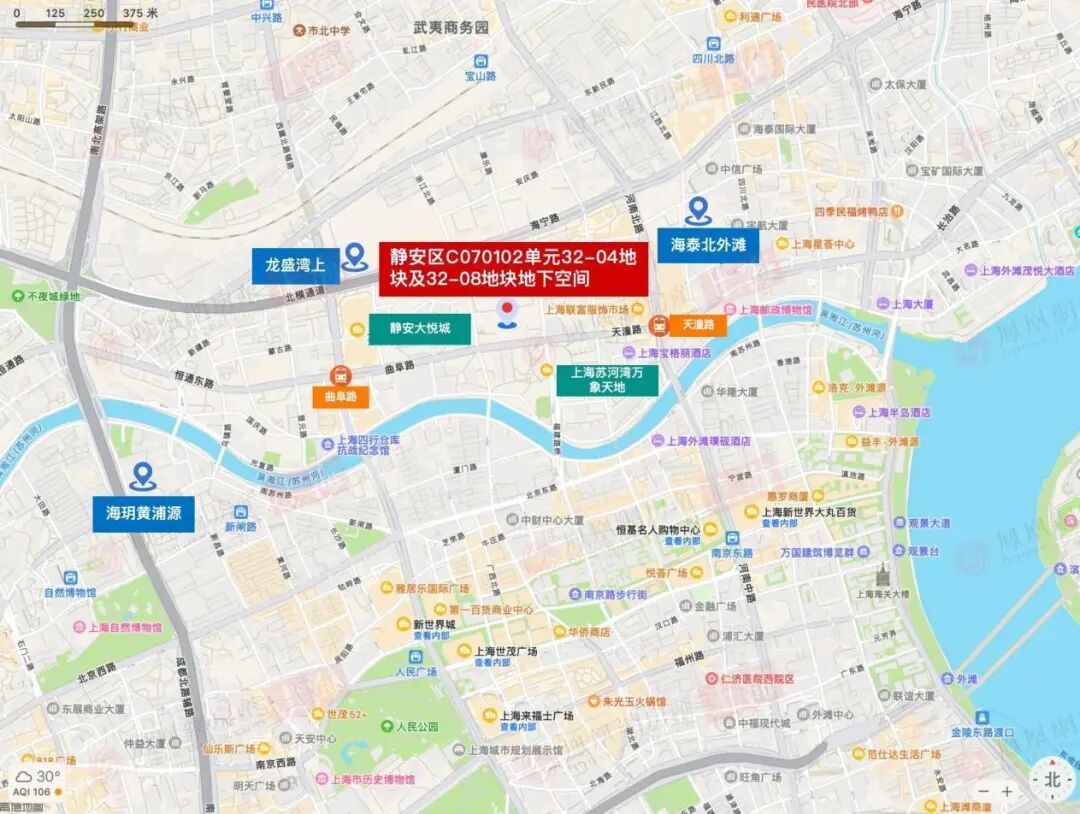 从区位来看,该地块坐落于苏河湾艺术文化集聚带,与华侨城苏河湾、中粮天悦壹号等顶级豪宅项目为邻,且零距离对接苏河湾万象天地和静安大悦城两大商业综合体。地块南向可俯瞰约200米宽的苏州河景,区位条件十分优越。