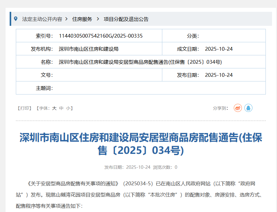 2025年10月24日,深圳市南山区住房和建设局正式启动山樾樾湾花园安居型商品房配售,推出3466套低价房源,特别值得关注的是,本次配售首次明确面向符合安居型商品房轮候申请条件的非在册轮候申请家庭开放申请通道。