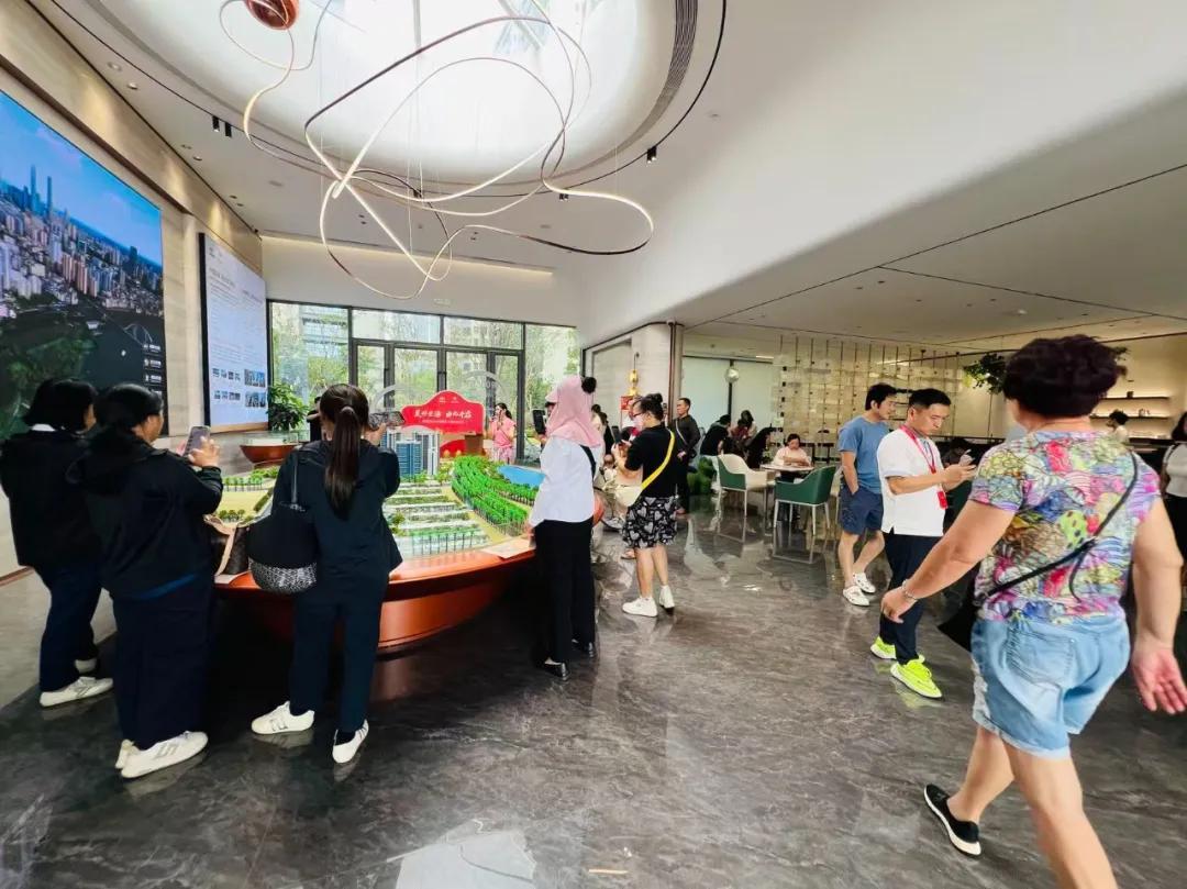 10月20日上午,记者来到了该项目销售中心,发现尽管前来看房的客户与前两天社交媒体爆出的情形有所减少,但也是不断有客户进进出出,场面颇为热闹。
