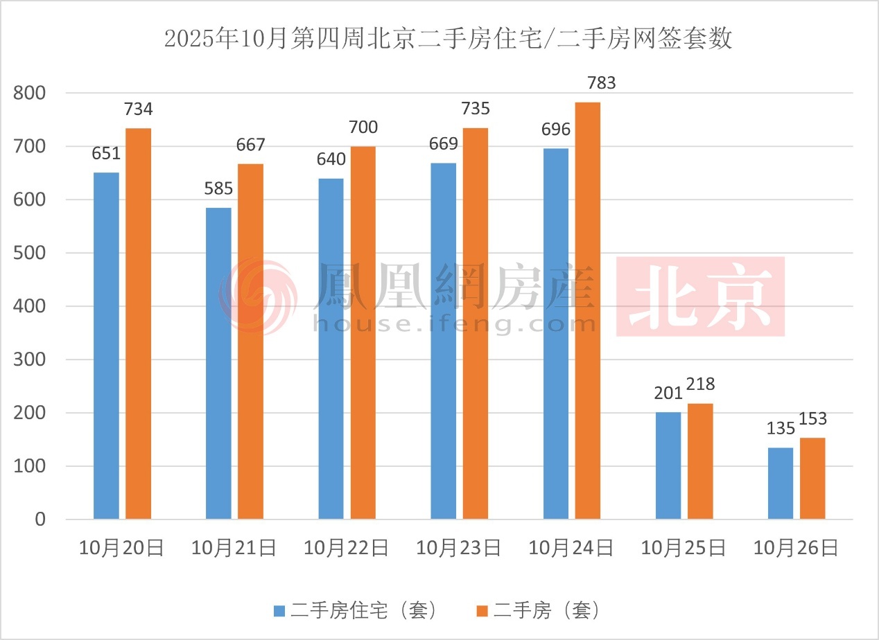 2025年10月第四周北京二手房住宅/二手房网签面积
