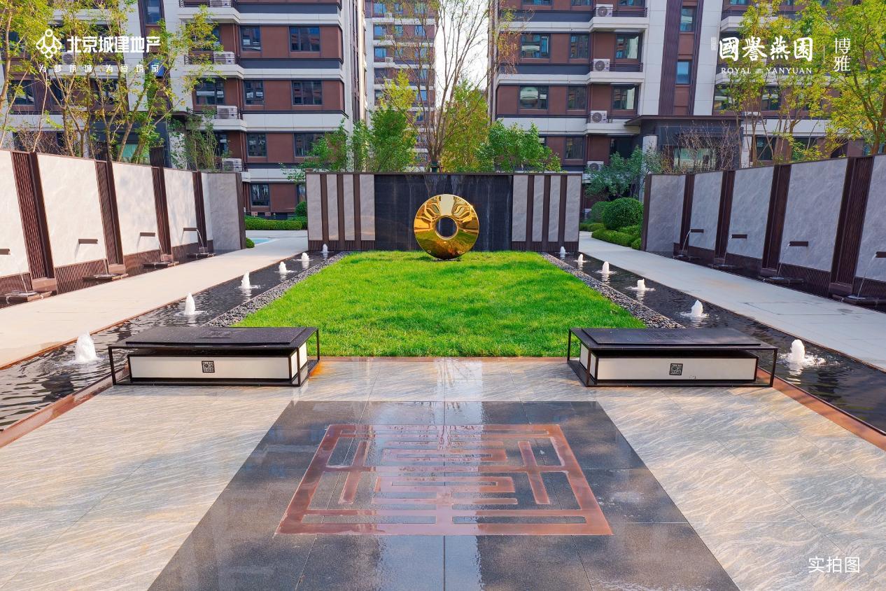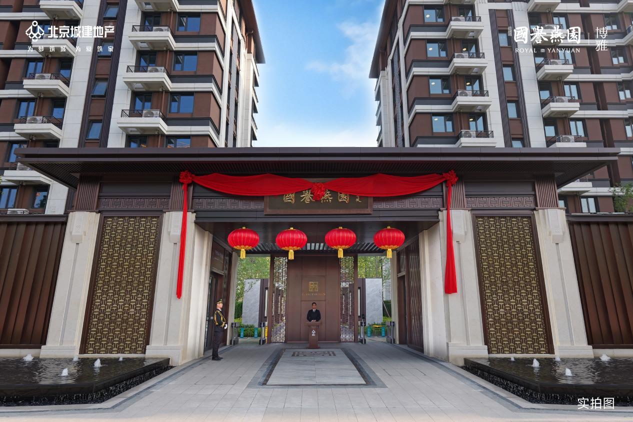穿过气派的社区大门,北京城建·国誉燕园的“国誉府系”新中式简唐风格建筑群豁然展现。