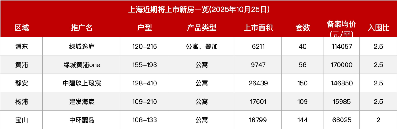 在新房公示方面,上周共有5个项目入市,总计推出499套房源,上市面积76,797㎡,总货值约76.38亿元,分别位于浦东新区、黄浦区、静安区、杨浦区以及宝山区。