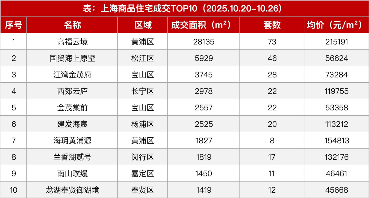 具体到项目层面,黄浦区淮海中路板块的高福云境表现最为突出,上周网签73套,成交面积28135平方米,网签均价达215191元/平方米。该项目于10月18日开盘,推出125套建面约276-592平方米房源,开盘当日去化率约75%。