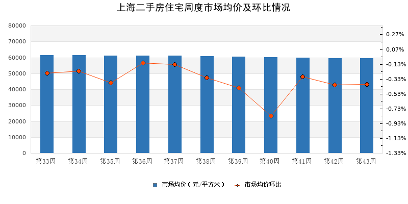 价格方面,市场仍面临下行压力。根据诸葛找房数据研究中心的监测,上周上海二手住宅市场均价为59431元/平方米,环比下降0.4%,延续了近期的回调态势,显示出业主预期持续松动,通过价格让步以加速成交已成为普遍策略。