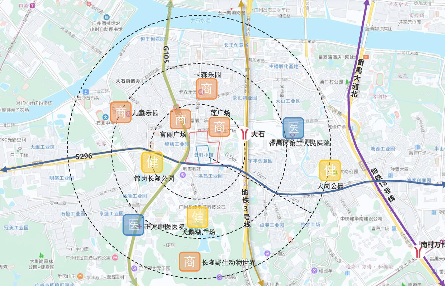 番禺区大石街南大干线北侧BA0602091地块南侧为南大干线、西侧为富石路。邻近3号线、18号线。