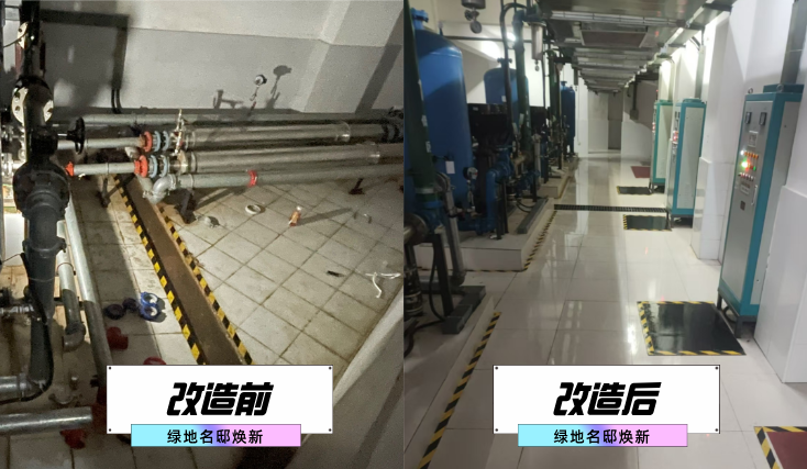在关系业主日常生活的核心设施方面,工程团队展开一系列扎实改造:南区水泵房水箱完成维修并投入使用,增设4套辅助变频器;北区加装高区大功率供水泵及3套恒压控制器,全面保障供水稳定。同时,完成149处外墙渗漏水维修,对42台电梯进行装饰美化,选用天然大理石与玫瑰金饰板,提升业主出行体验。
