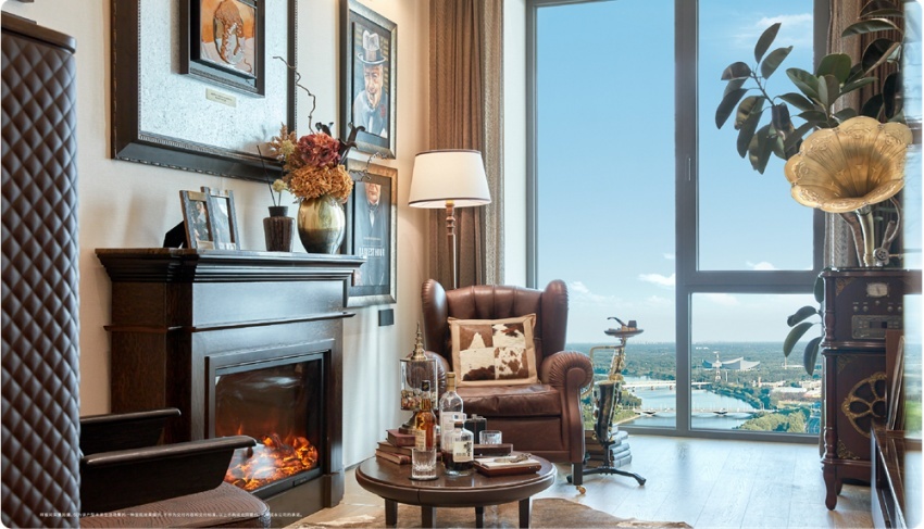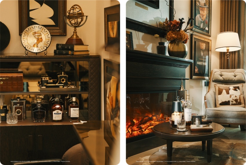 弧形沙发以优雅的曲线呼应着运河的流动之美,精湛的人体工学设计,在视觉与舒适度间找到完美平衡。装饰壁炉采用特殊金属材质打造,其精致的细节与运河的沉静气质相映成趣。