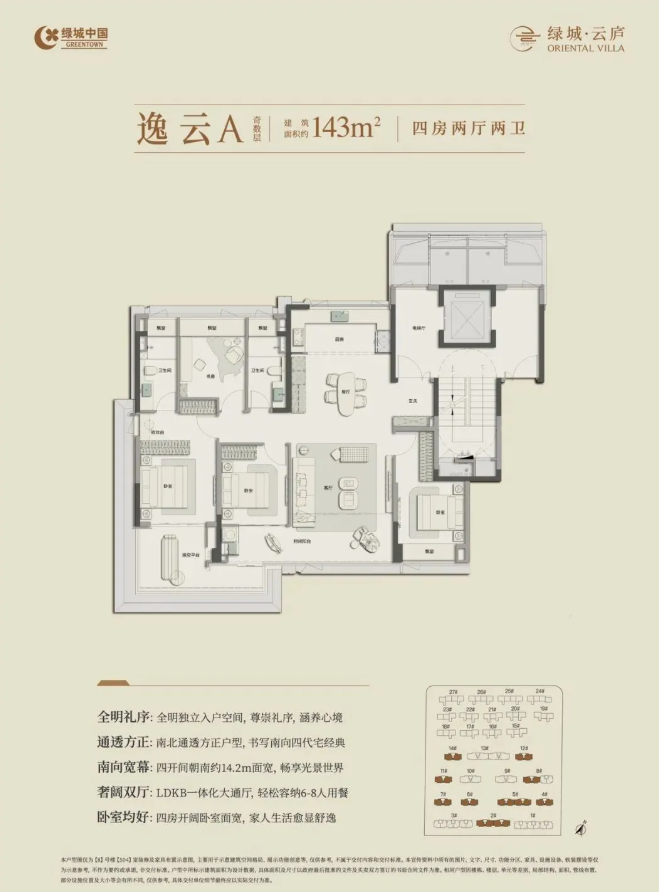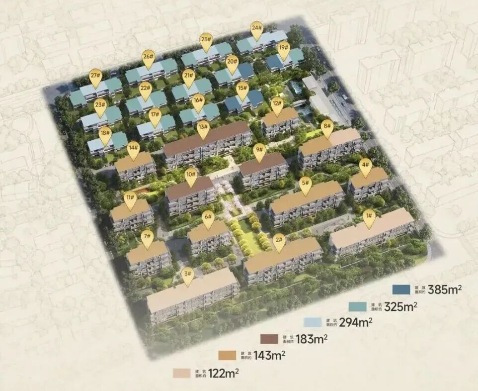 项目规划14栋7F洋房(122-183㎡)和13栋3F低密住宅(294-385㎡),其中,洋房产品户型为约122㎡三房、143㎡四房、183㎡四房;低密产品户型面积约294㎡、325㎡、385㎡。