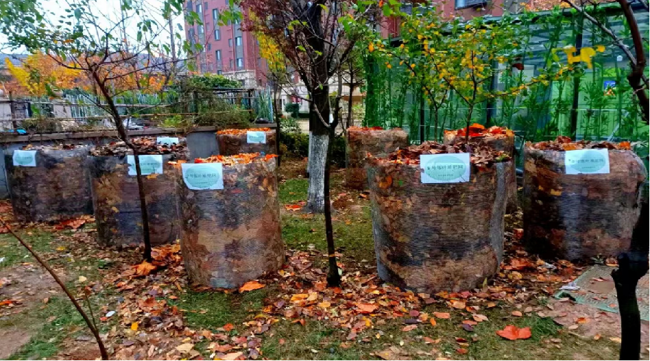 贵阳万科城小区则探索出植物废弃物资源化利用的新路径,将日常修剪产生的草尖、落叶全部纳入堆肥体系。其堆肥遵循科学转化原理,在可控条件下历经三个关键阶段:先进入中温期(升温期)启动微生物活动,再进入高温期杀灭有害病菌和虫卵,最后通过降温 / 腐熟期稳定转化为腐殖质。这种腐殖质是土壤肥力的核心,既能改善土壤板结问题,又能提升保水保肥能力,让社区绿化养护实现 “自给自足”,进一步降低了外购肥料带来的碳排放和成本支出。