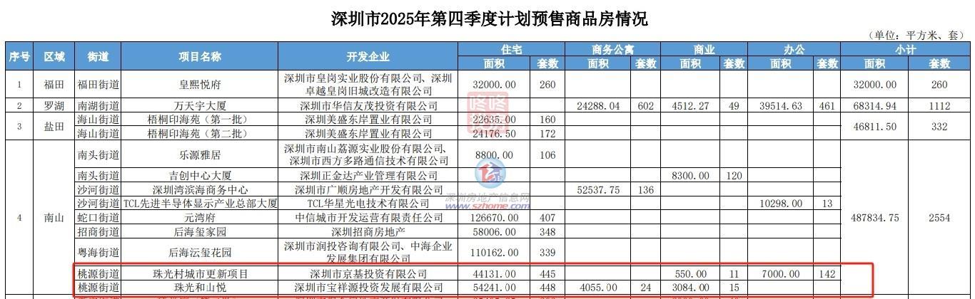其中,京基珠光村城市更新项目预计推出445套住宅;珠光和山悦项目也将推出448套住宅。