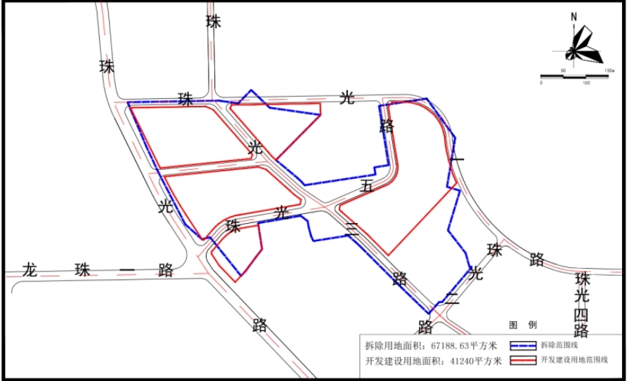 规划显示,珠光村旧改总用地面积为156169.5㎡,拆除用地范围为135520.1㎡。