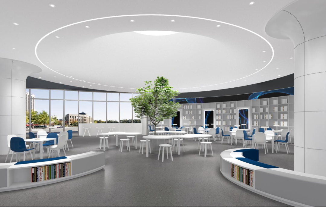 项目合理安排教学楼、操场、图书馆等空间关系,旨在建设一个“让学生在校园每个角落都能阅读”的书香校园。以首层图书馆为核心,通过在各个组团中的机动教室与活动平台进行阅读交互,以及在每一间教室设置随处可见的图书角空间,实现三阶区位的展阅空间延伸至整个校园。