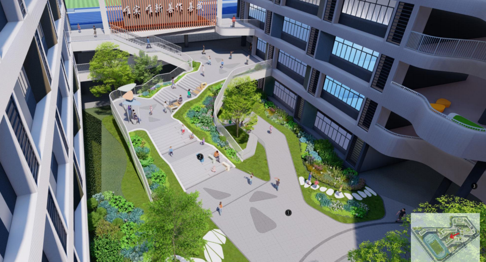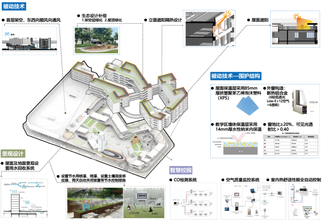 设计中强调使用环保绿色材料,严格遵循节能减排原则,共同推动构建绿色、低碳、可持续的校园环境。