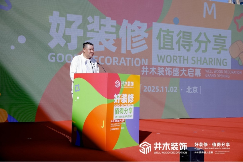 井木装饰董事长张轶登台,对到场的所有来宾表示衷心感谢,并深入阐述了品牌的核心理念。“感谢每一位选择在今天与我们共同开启未来的朋友。井木的诞生,源于我们对当下装修市场痛点的深刻洞察,以及对于‘好装修应该是什么样子’的重新思考。”他动情地说道,“我们不做信息的垄断者,而是做知识的普及者;我们不做方案的强硬推销者,而是做需求的贴心满足者。我们的‘模块化交付,环扣作业’体系,确保了专业人干专业事,让设计、施工、采购、安装像精密钟表一样无缝衔接。而每一位客户,都将拥有一位专属的‘服务总管’,进行一对一的全程沟通与协调。我们的目标只有一个:让装修过程变得透明、高效,让结果超越期待,最终让每一位客户都愿意主动分享他们的装修故事!”